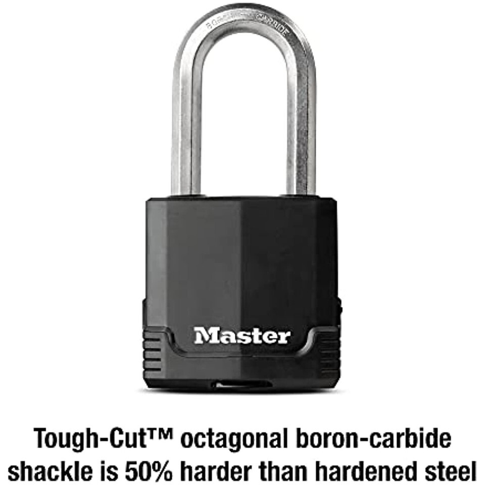 Key lock features Dual Armor construction: laminated steel lock body with weather resistant cover and Tough-Cut octagonal boron-carbide shackle is 50% harder than hardened steel