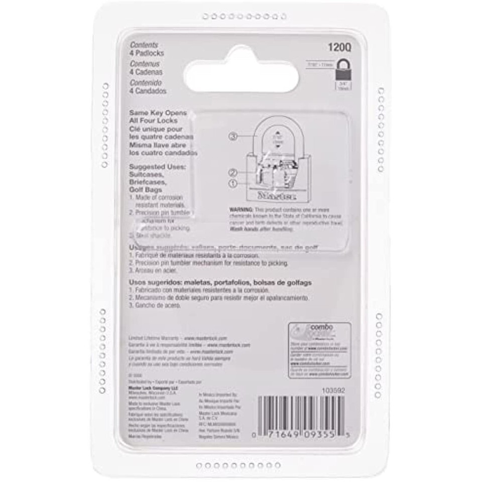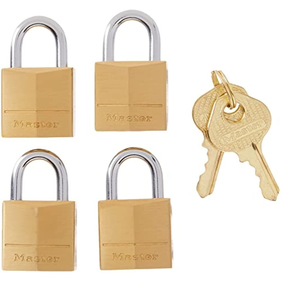 - Master Lock Padlock, Solid Brass Lock, 3/4 in. Wide, 120Q (Pack of 4-Keyed