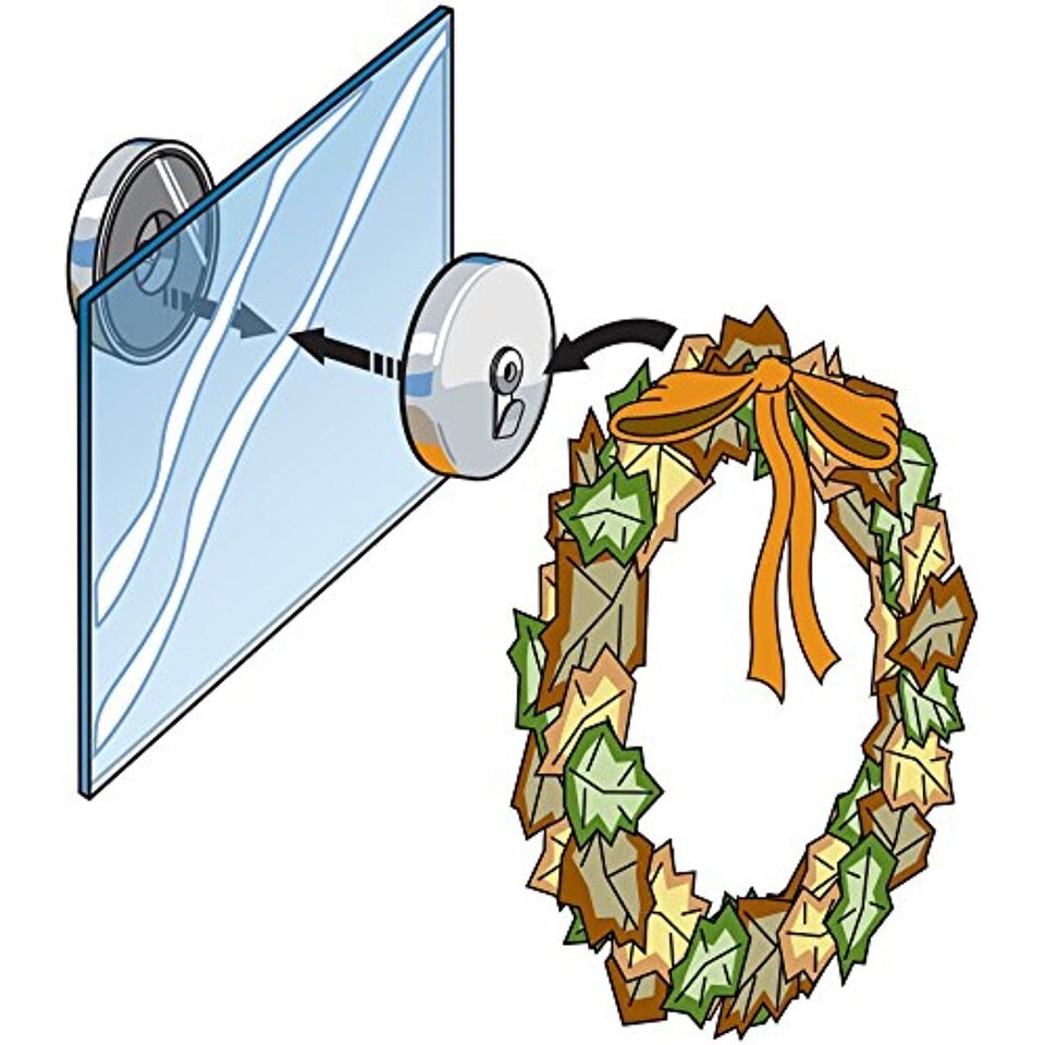 2 Pack, Magnetic Wreath Holder, Super Strong Magnetic Cups Hold Through Glass, Back Of Cups Are Coated With A Non Stick, Non Scratch Vinyl, Can Be Used As 2 Separate Hooks To Hang Multiple Wreaths, Signs, Etc. On Steel Surfaces, Displayed On A Blister Card.