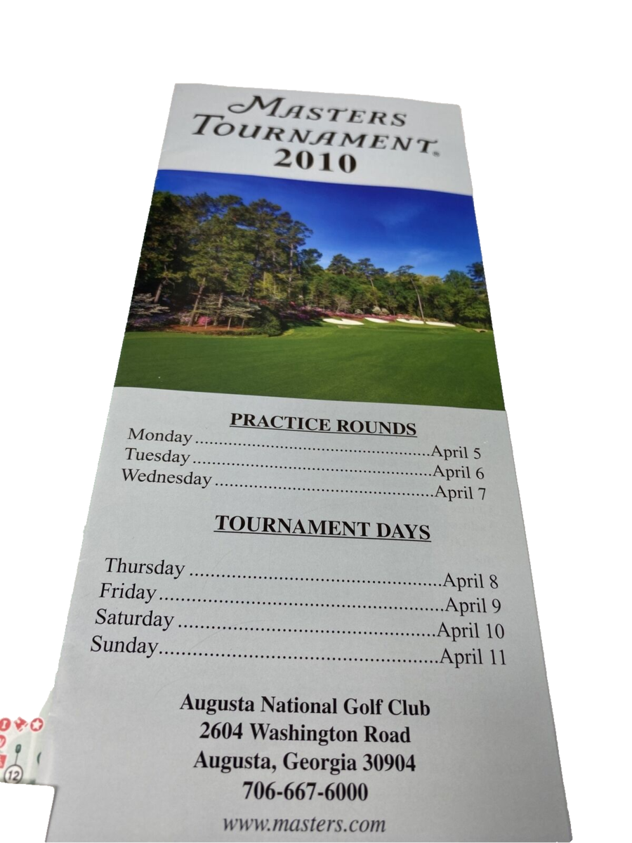 - Masters 2010 Spectator Guide, Friday Tee Sheet, Misc. Materials/Brochures
