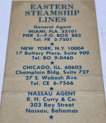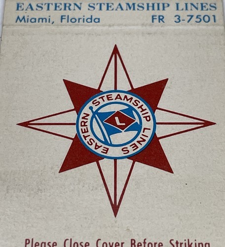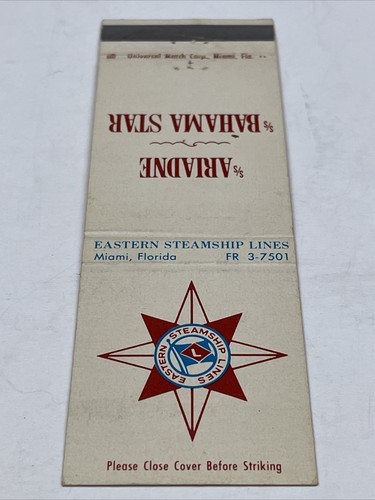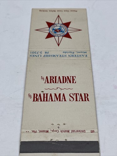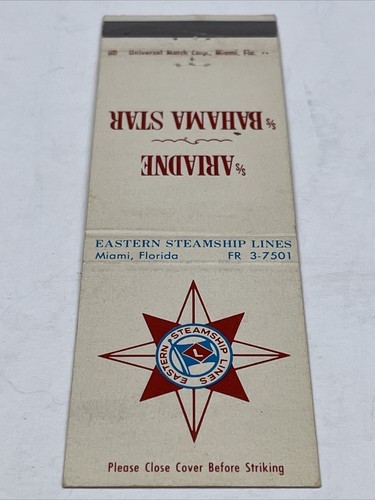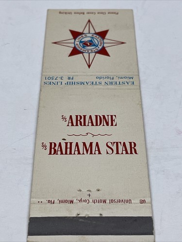 - Matchbook Cover Eastern Steamship Lines Miami, FL Unstruck gmg S/S Ariadne