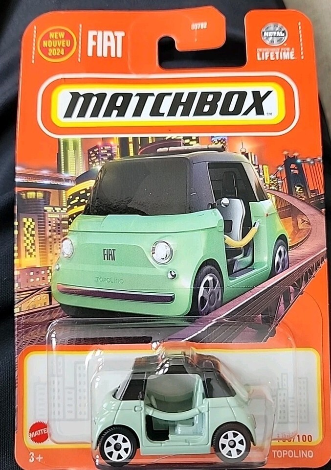 The Matchbox 2024 Fiat Topolino in mint green is a diecast toy vehicle with a scale of 1:64. This model is part of the contemporary manufacture line and is suitable for children aged 3 and up. It is a collectible item perfect for both boys and girls who love cars, especially fans of the Fiat Topolino. Made in Thailand by the Matchbox brand, this toy car is a great addition to any diecast vehicle collection.