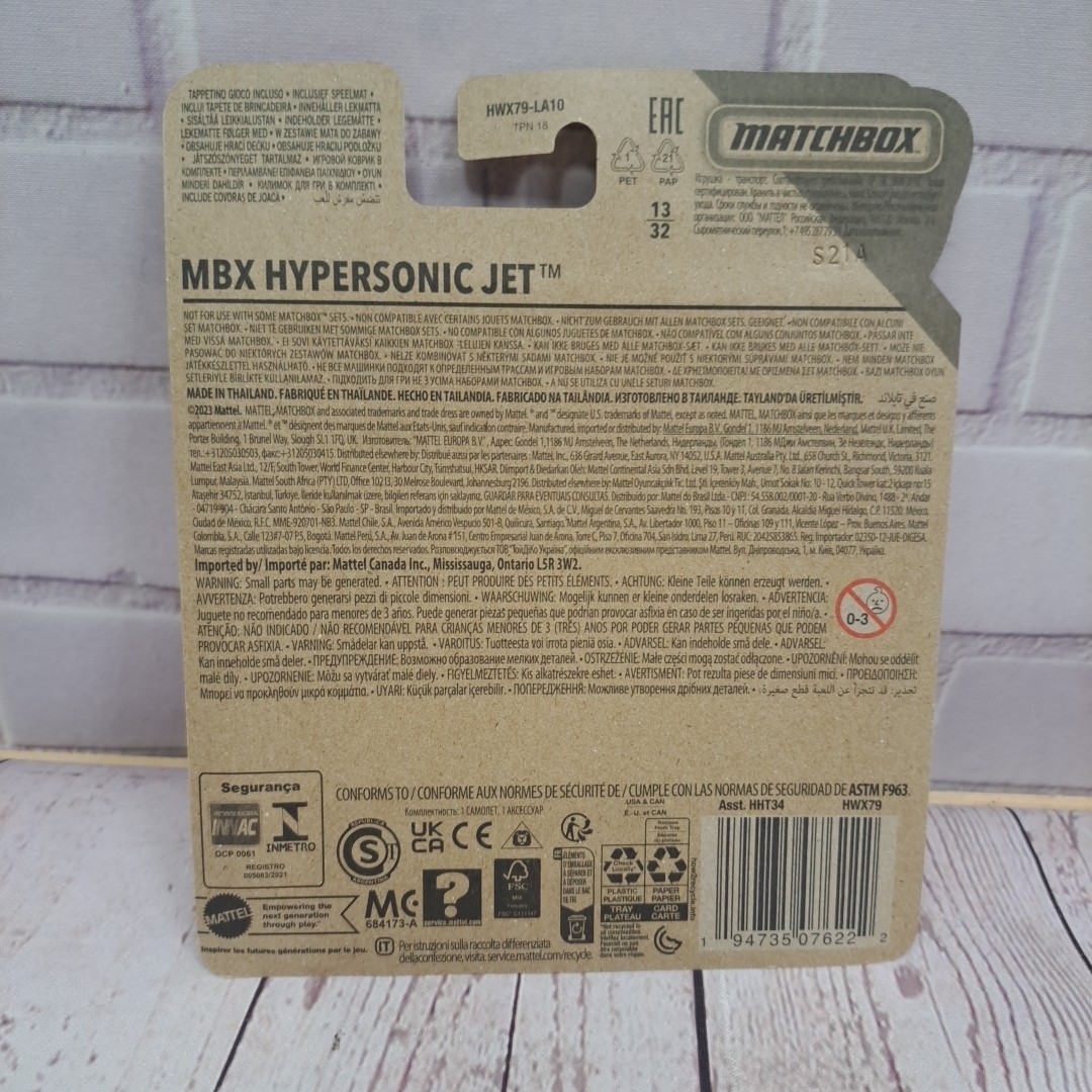 The Matchbox Sky Busters Hypersonic Jet in orange and white is a limited edition diecast toy vehicle celebrating the brand's 70th anniversary. This 1:64 scale model features a metal and plastic construction, making it a durable addition to any toy collection. The jet comes in an unopened box and includes a playmat, adding to the play experience for fans of contemporary manufactured cars, trucks, and vans. Perfect for enthusiasts of Matchbox vehicles, this collectible piece is a must-have for those interested in aviation-themed toys.