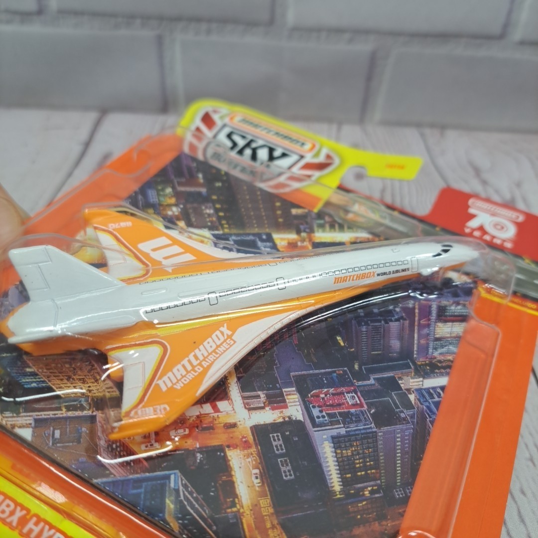- Matchbox Sky Busters Hypersonic Jet Orange & White w/Playmat, 13/32 70th Anni