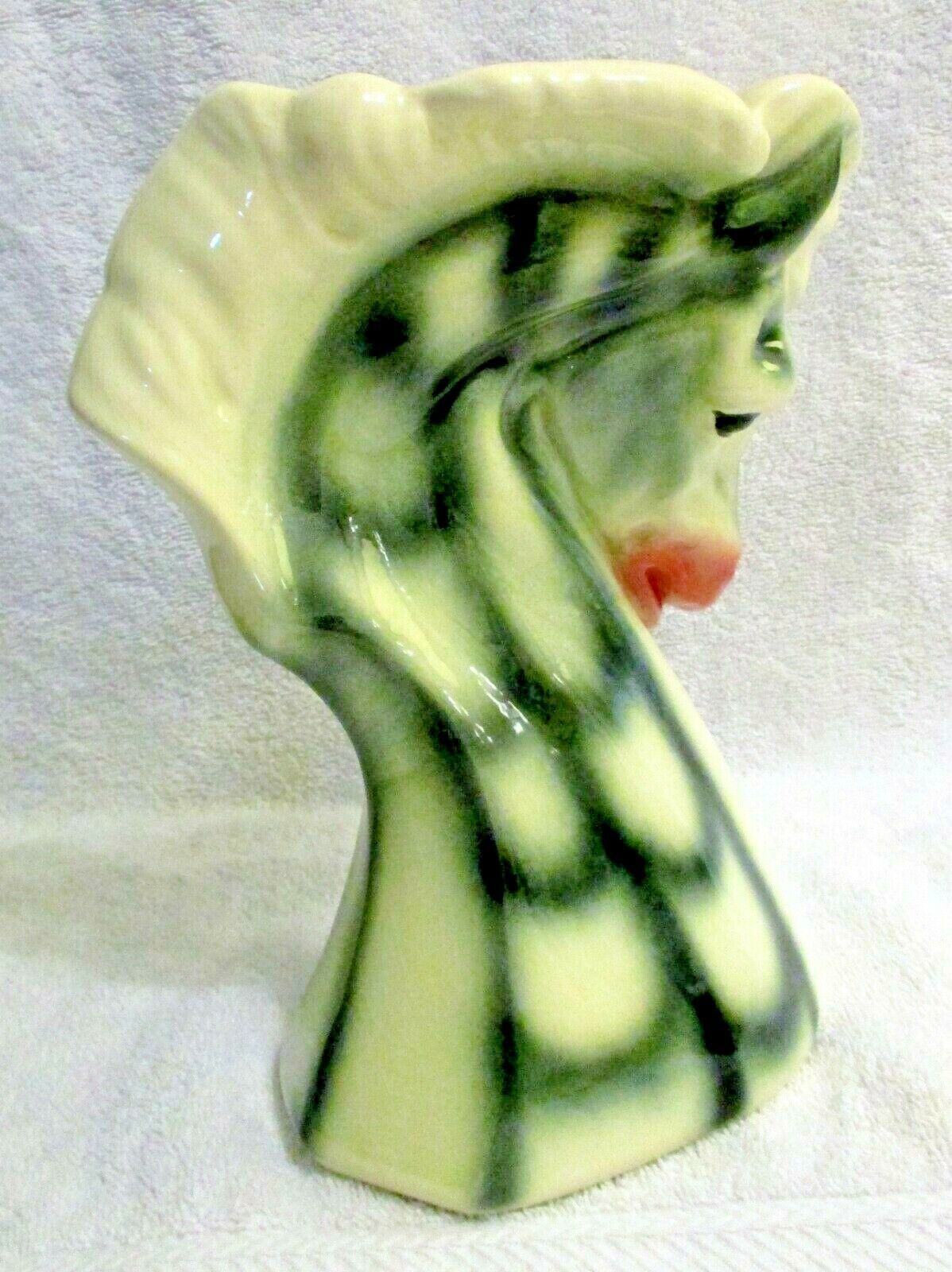 - Matching Pair Porcelain Green and White Pink Snout Sea Horse Head Figurines