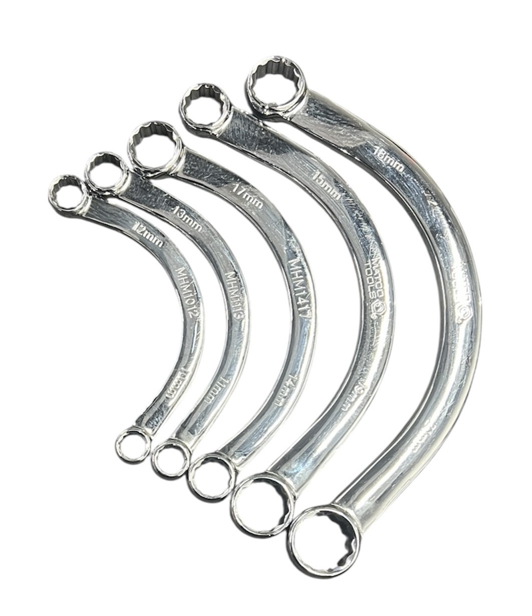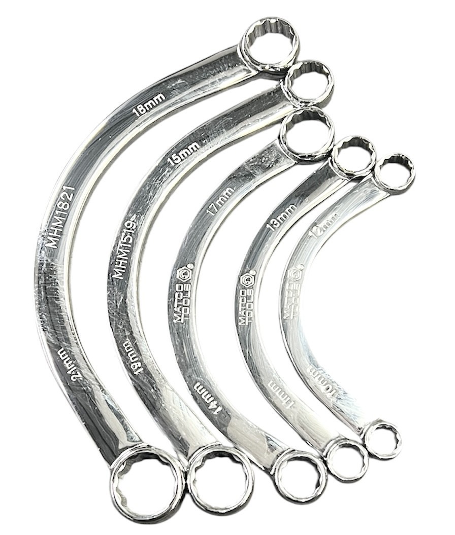 Category: Loose hand toolsType: WrenchBrand: MatcoModel number: SMHM5TModel name: Metric Half Moon Wrench SetSize: 5PCColor: ChromePower source: Hand-heldCondition:UsedNotes:Excellent condition. 5pc, includes: 10mm x 12mm, 11mm x 13mm, 14mm x 17mm, 15mm x 19mm, 18mm x 21mm