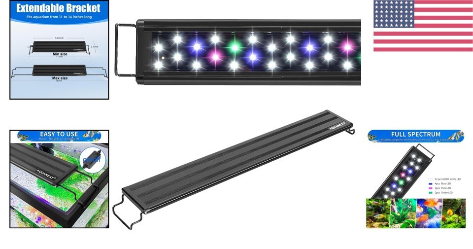 - Matte Black Full Spectrum LED Fish Tank Light – Perfect for Freshwater Aquariums