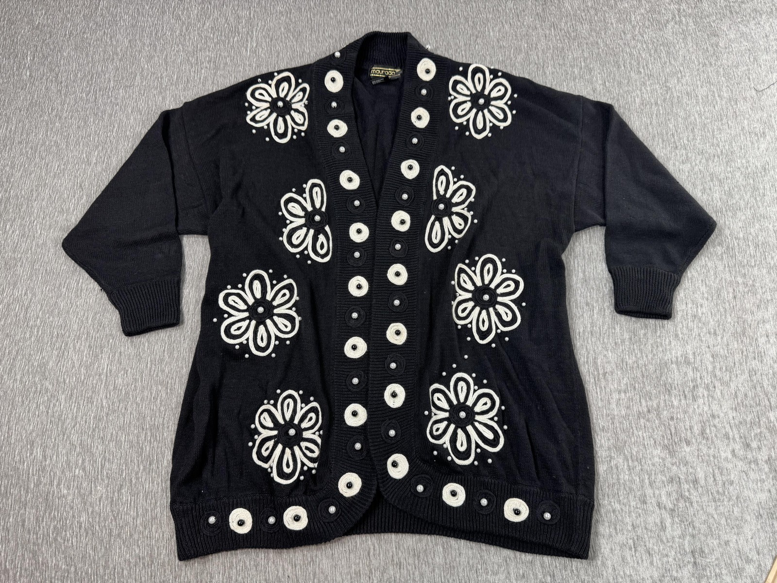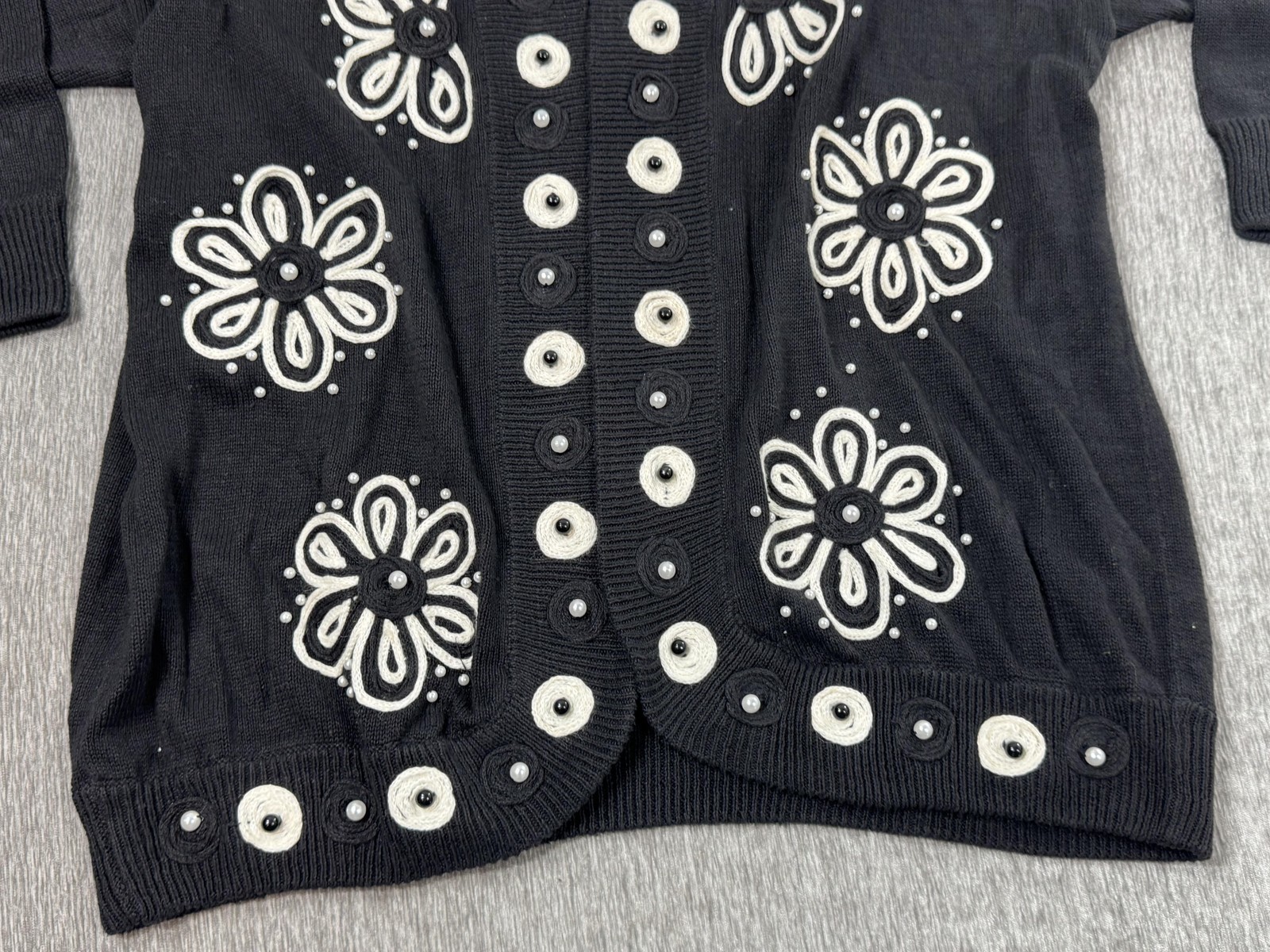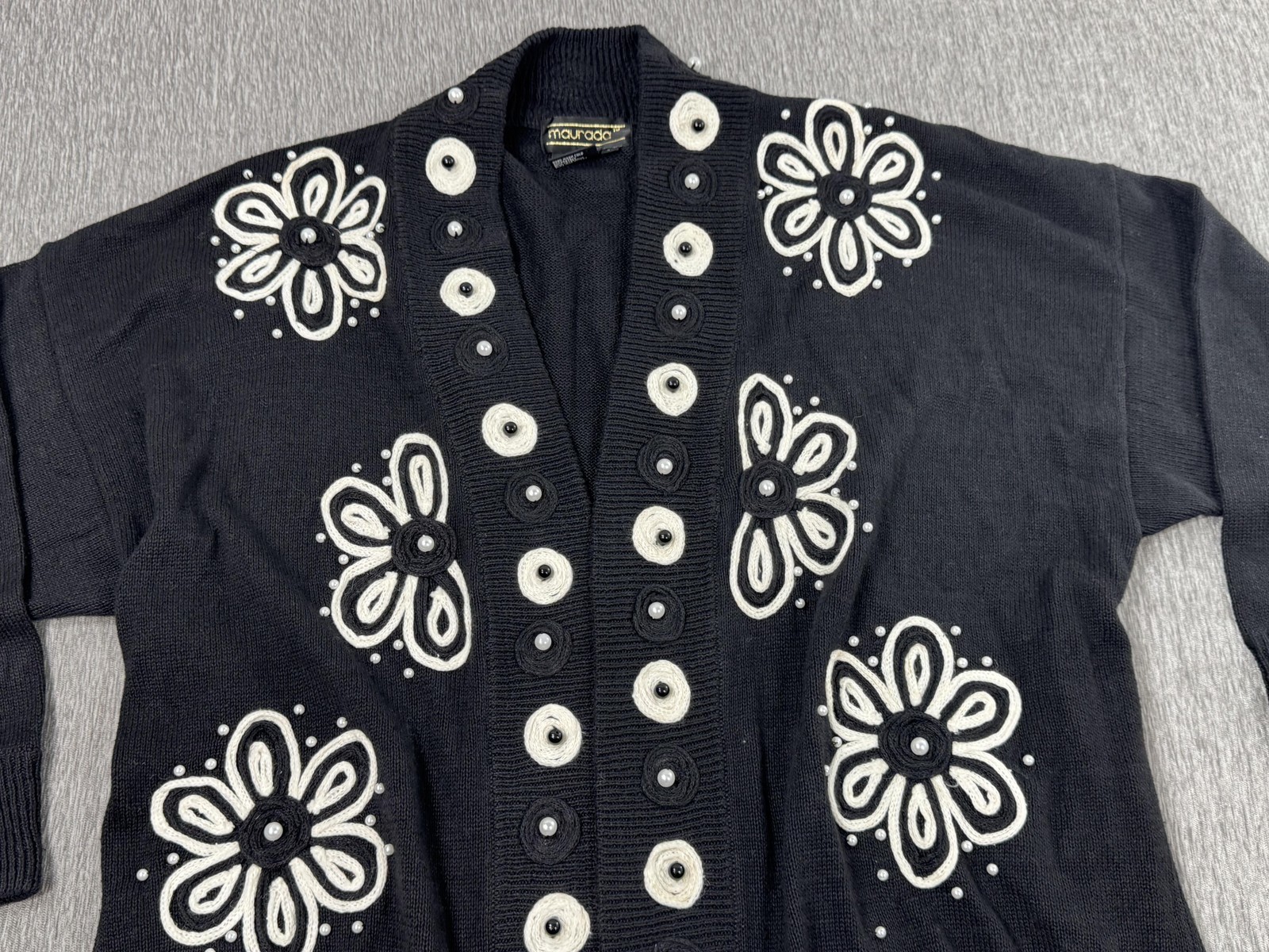 - Maurada Cardigan Sweater Womens 3X Plus Black Open Front Floral Beaded Applique