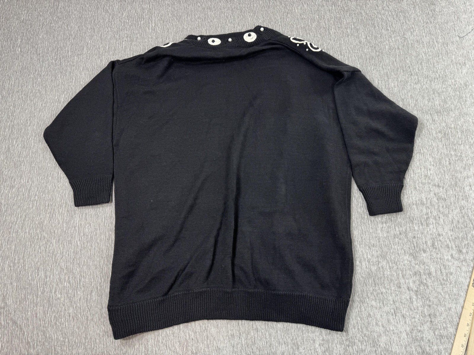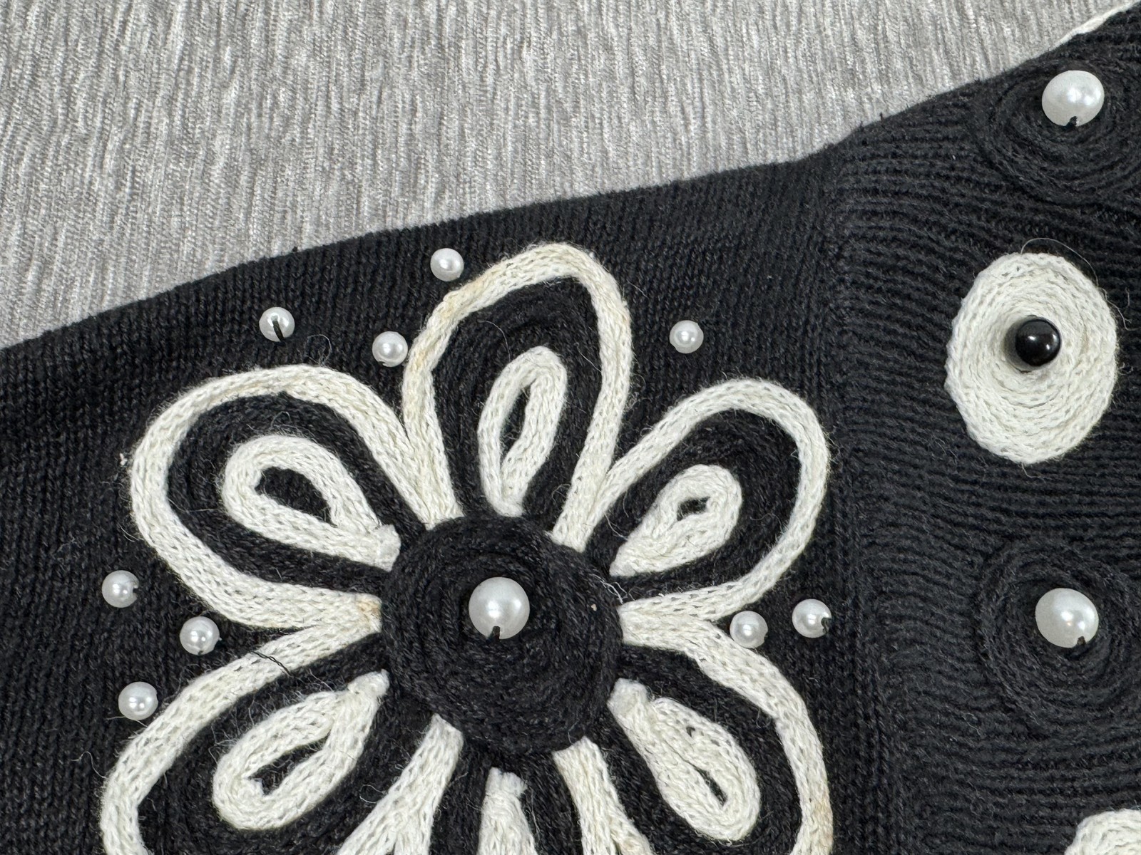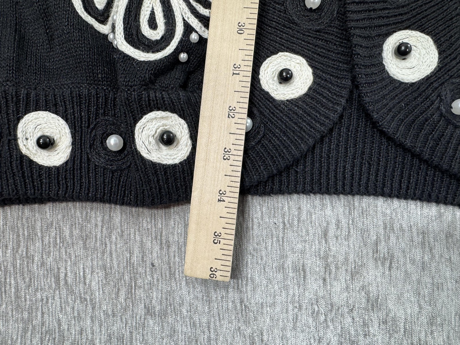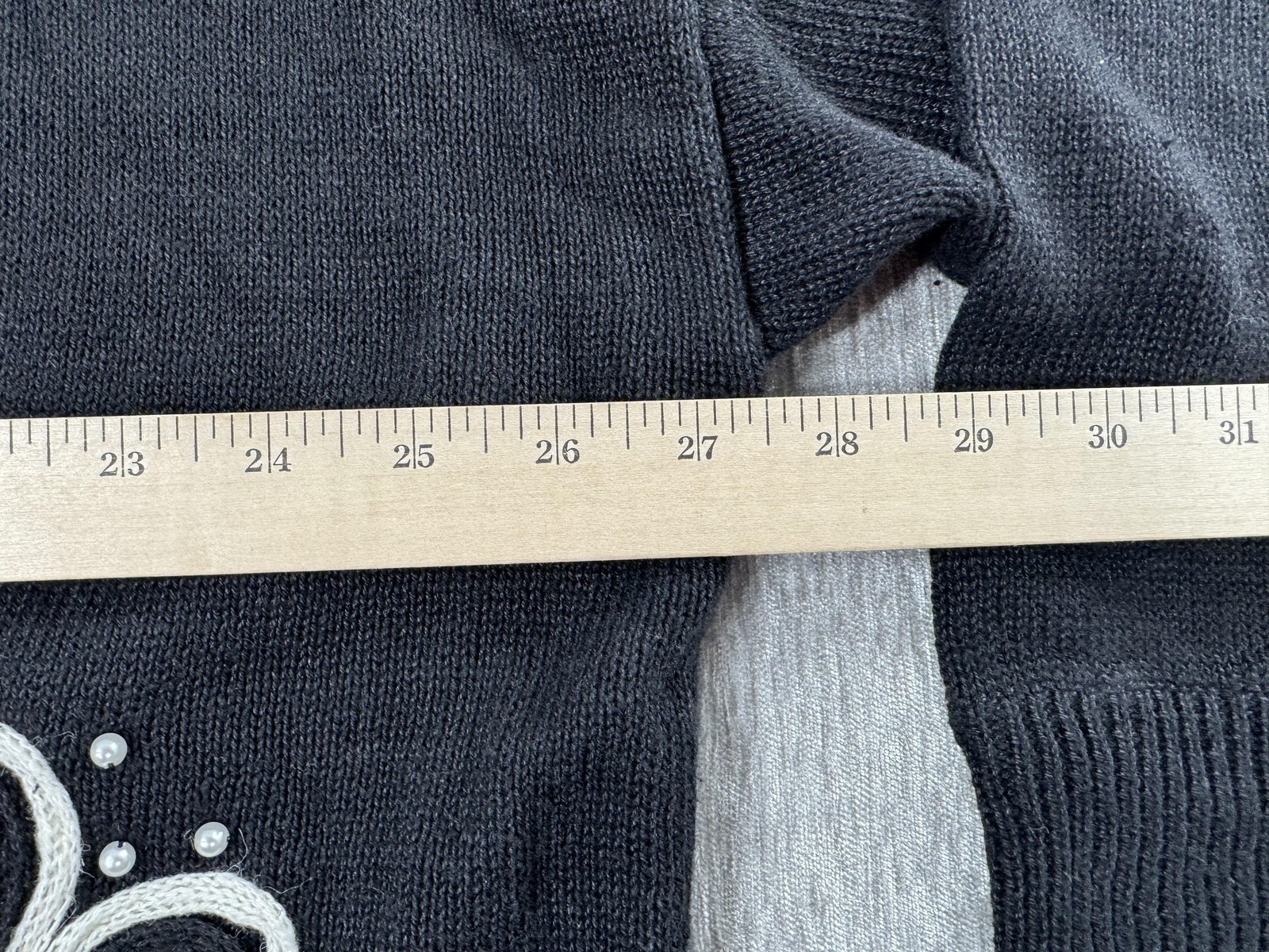 - Maurada Cardigan Sweater Womens 3X Plus Black Open Front Floral Beaded Applique