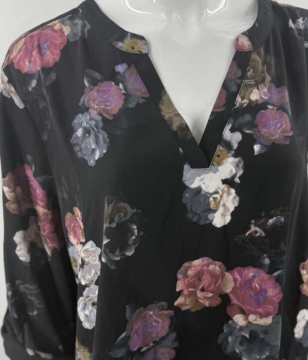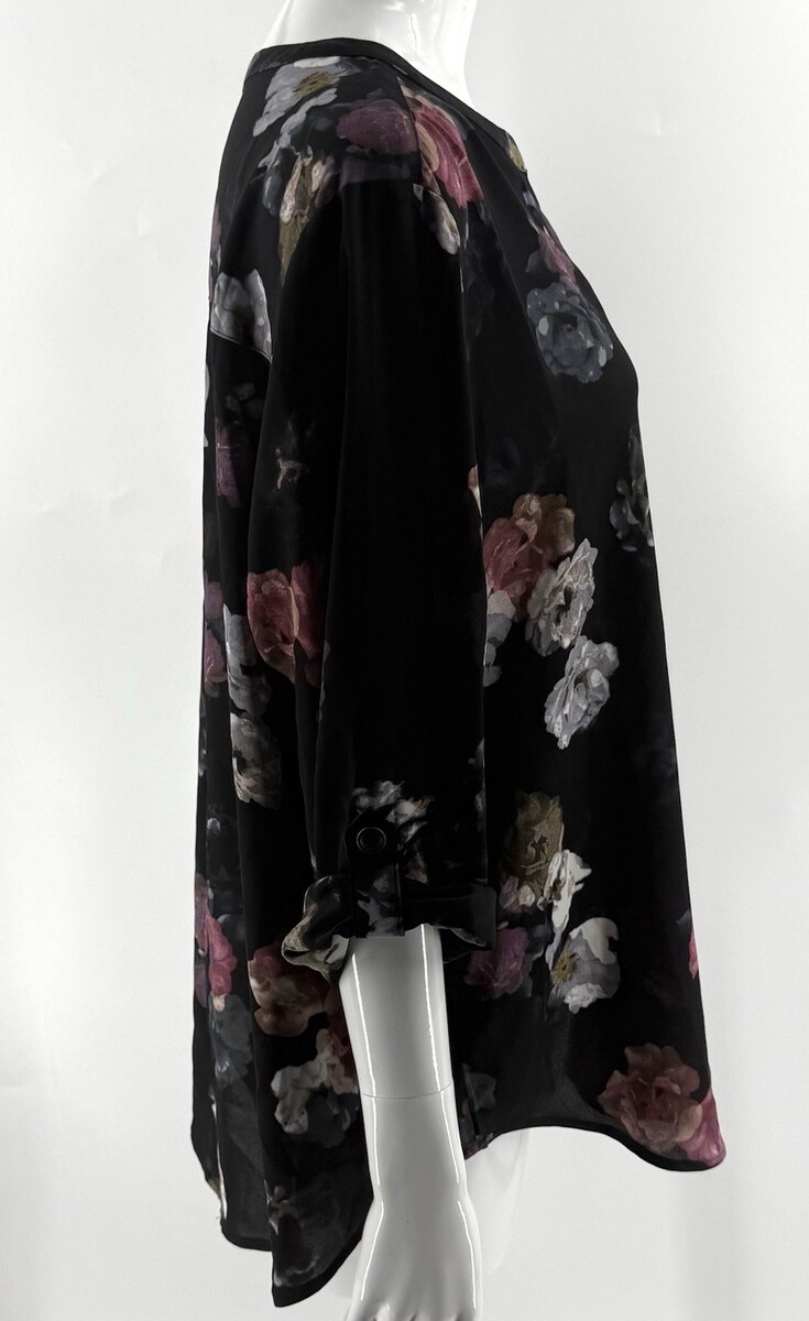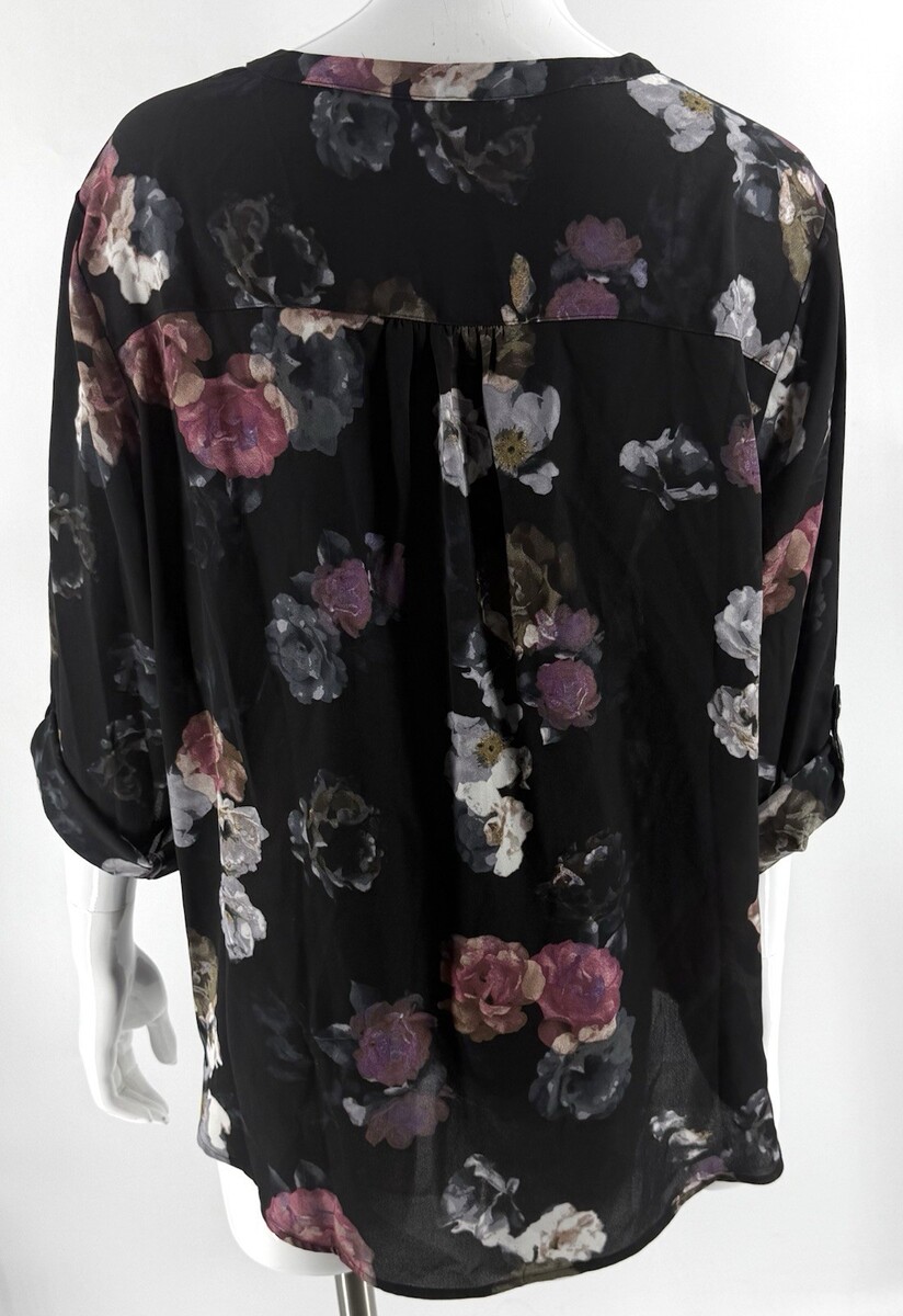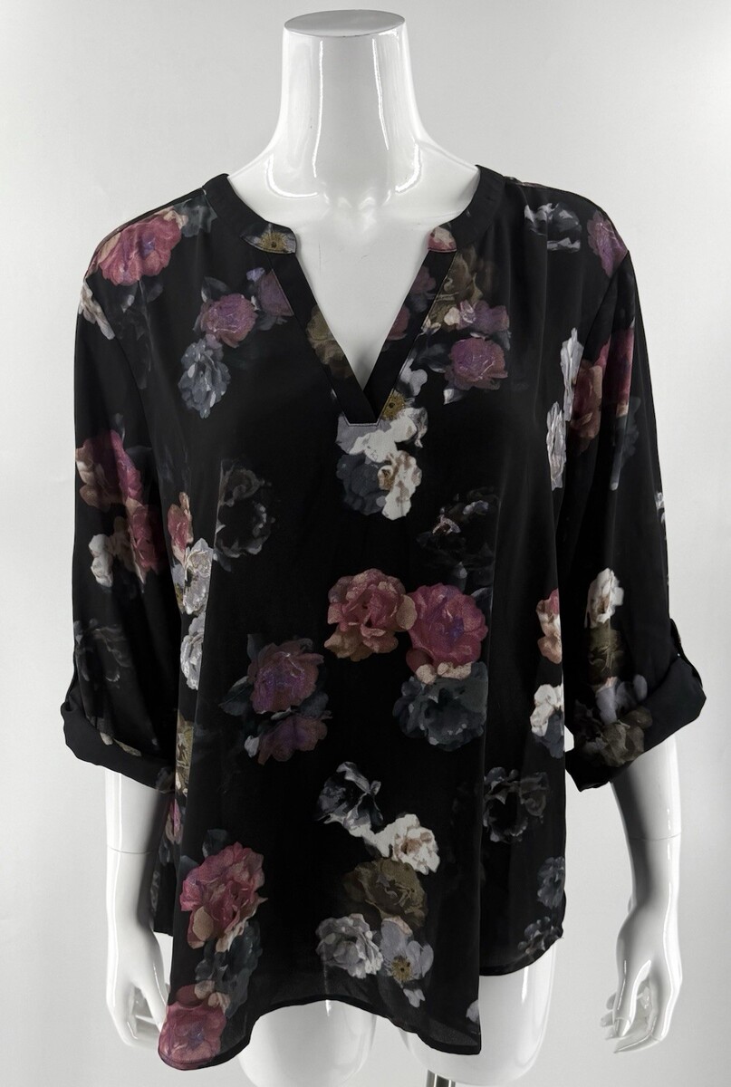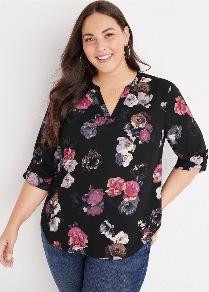 - Maurices Plus Size XXL Atwood Floral 3/4 Sleeve Popover Blouse Top Black Pink