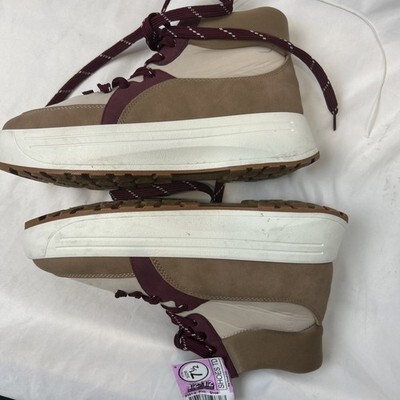 Maurices Womens Platform Sneaker Boots Tan Beige Burgundy Laceup Chunky Sole 7.5