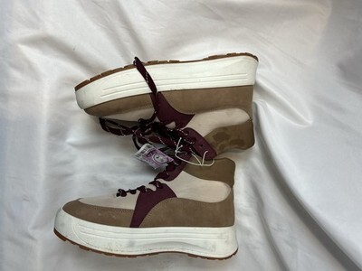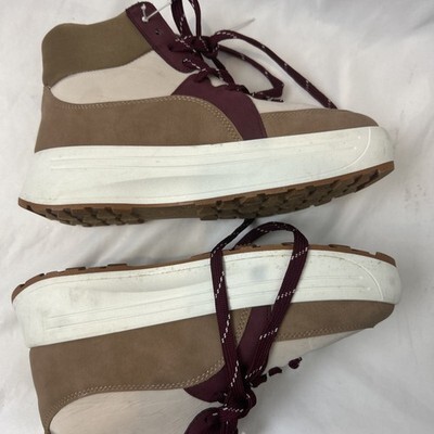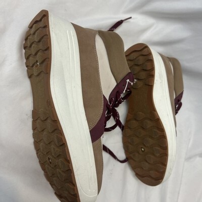 - Maurices Womens Platform Sneaker Boots Tan Beige Burgundy Laceup Chunky Sole 7.5