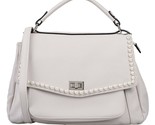 Maury Italian Made Stone Beige Leather Satchel Handbag Purse with Pearl Detail