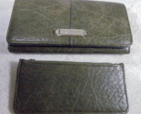 Description: Pebbled dark green faux leather organizer wallet with separate zippered pouch.