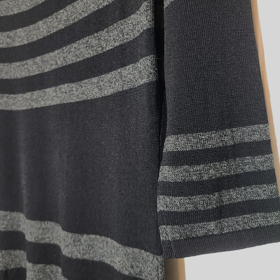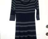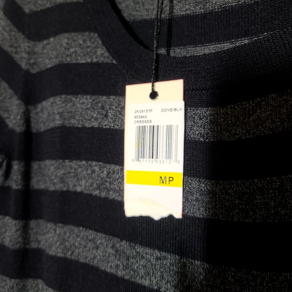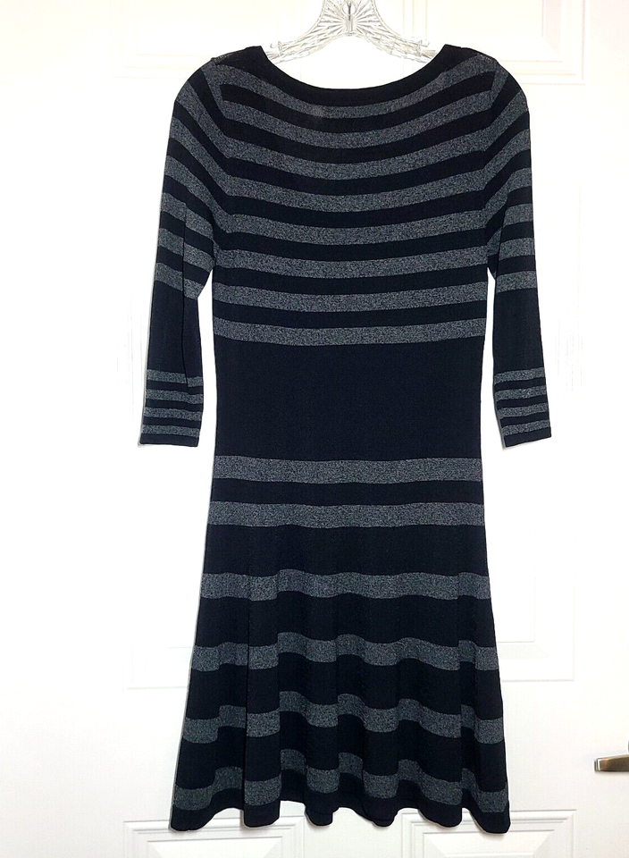 Max Studio Dress Size MP Fit Flare Stripe Black Gray 3/4 Sleeve Stretch