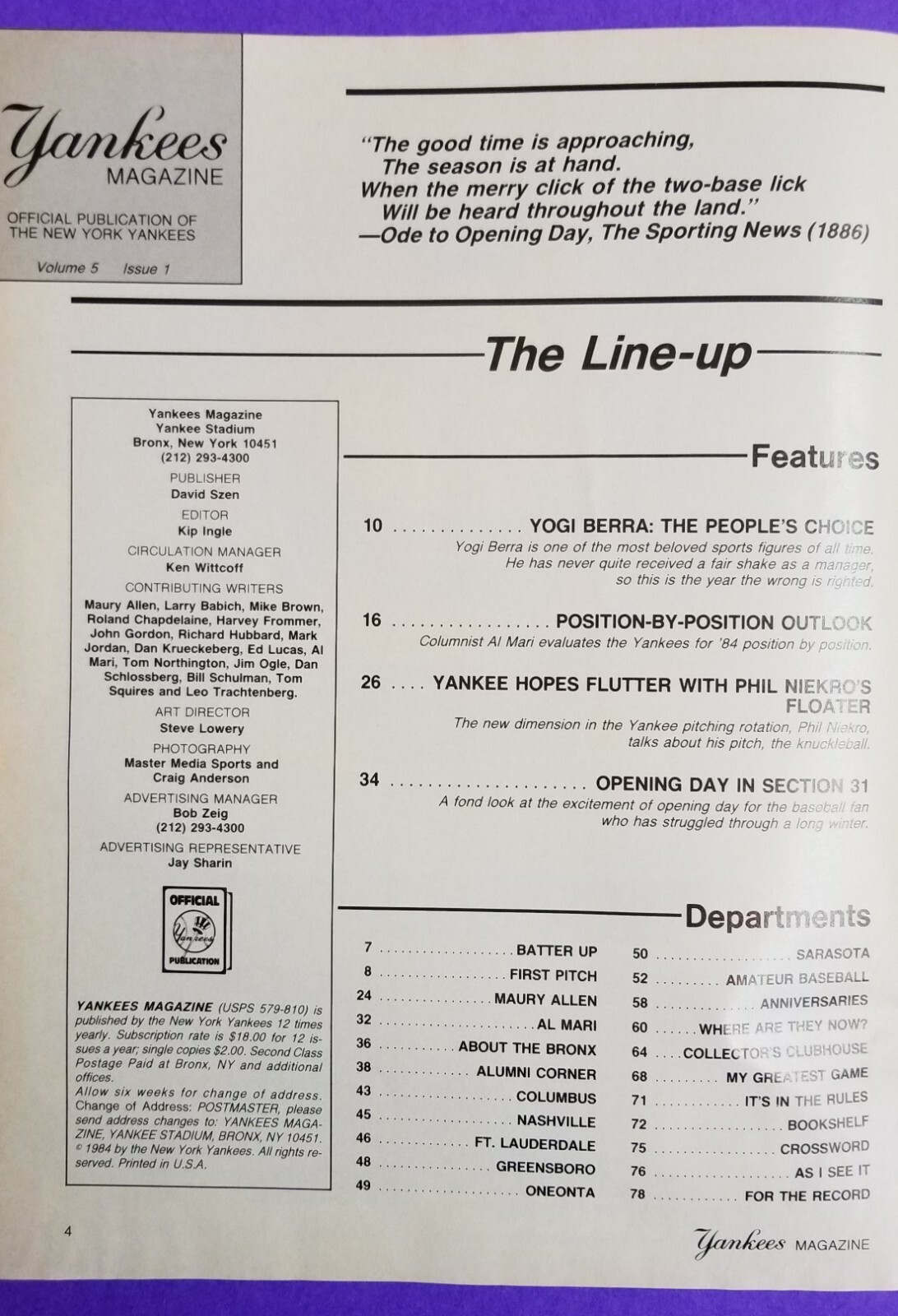- May 10, 1984 New York Yankees Magazine Yogi Berra Anniversary Issue