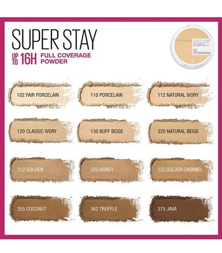 - Maybelline 16H Super Stay Full Coverage Powder Foundation 332 Golden Caramel