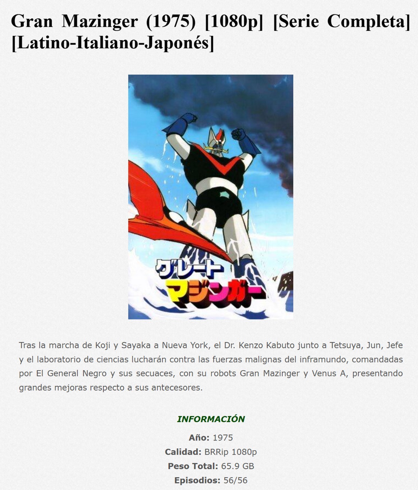 - Mazinger Z Mega-Coleccion 5 Series TV Completas + Comics