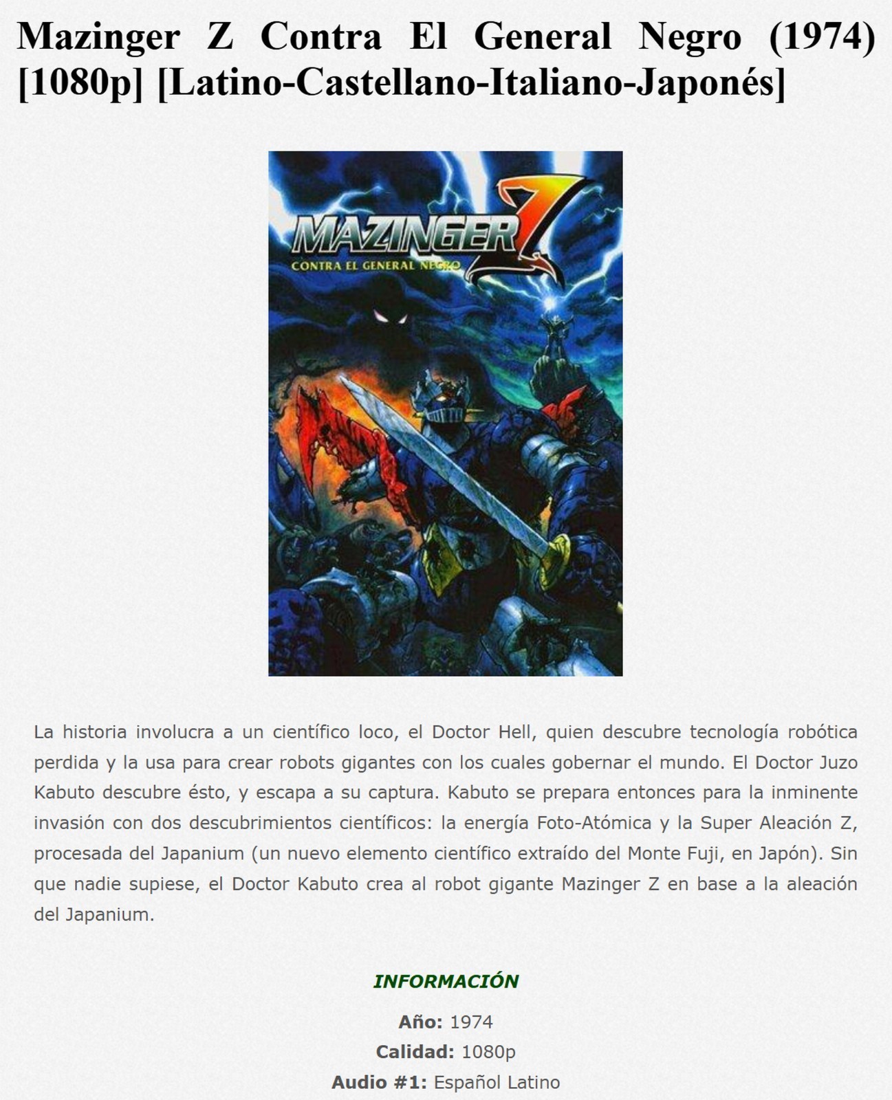 2) Mazinger Z Contra el General Negro (1 Serie año 1974)
