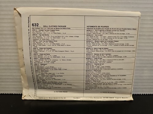 - McCalls CRAFTS 632 Pattern 11.5" Barbie & Maxie Doll Clothes Package UnCut
