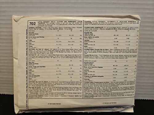 - McCalls Crafts 702 Little Raggedys 12 & 16" Dolls Clothes Pattern UnCut Vtg 1991