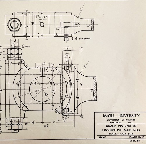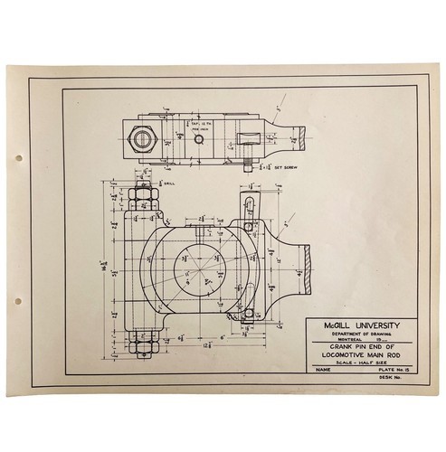 - McGill University Locomotive Crank Pin 1965 Mechanical Drawing Print DWEE12