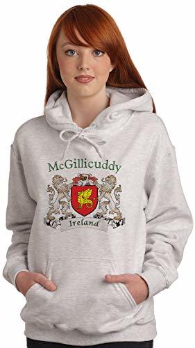 McGillicuddy Irish Coat of Arms Hooded Sweatshirt in AshEvery Irish family has a story to tell-probably hundreds of stories. Your Irish coat-of-arms is a visual record of your family's oldest, most significant stories. Here, they're told in bright, four color permanent artwork on these fine-quality ash hooded Sweatshirts. Imprinted USA. Authentic Irish Family Coat of Arms. Over 25 years of Heraldry Research. 8.0 oz., 50/50 cotton/polyester. Printed with four color permanent process(no cracking or peeling-guaranteed). Choose from over 1000 available family coat of arms.