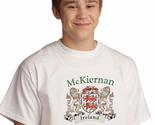 Product description: McKiernan Irish Coat of Arms Tee Shirt in White. Every Irish family has a story to tell, probably hundreds of stories. Your Irish coat of arms is a visual record of your family's oldest, most significant stories. Here, they're told in bright, permanent artwork on these fine-quality, 100% cotton Gildan tee shirts. Over 25 years of heraldry research and over 1000 available Irish family coat of arms.