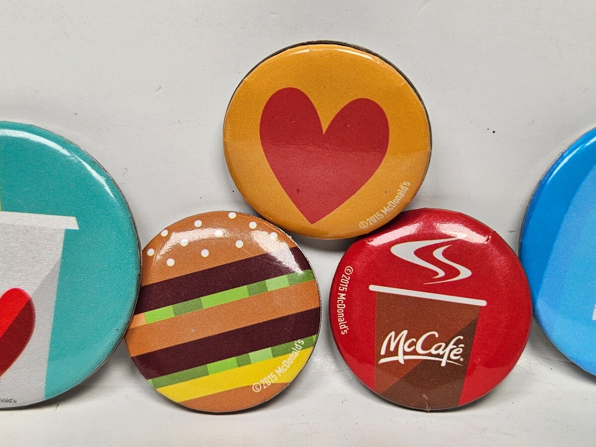- Mcdonalds Round I'm Lovin It McCafe Heart Burger Lapel Pin Lot of 5 Button