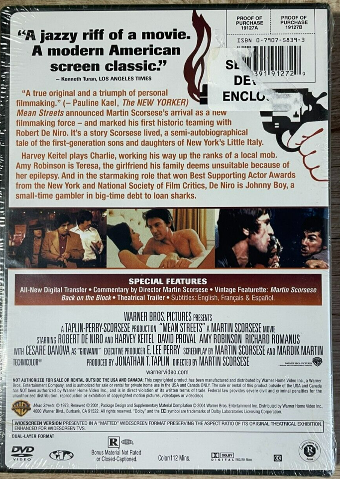 - Mean Streets (DVD, 2004, Special Edition): Drama, De Niro, Scrsese, Crime: NEW