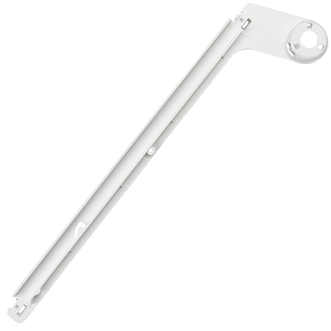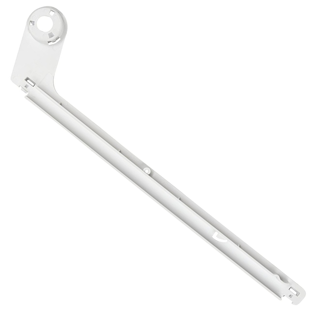 Refrigerator meat pan drawer track support rail, left side. This is a new replacement part.
