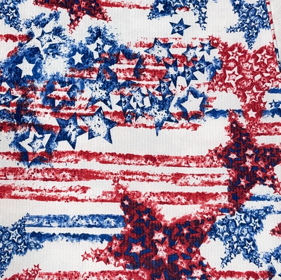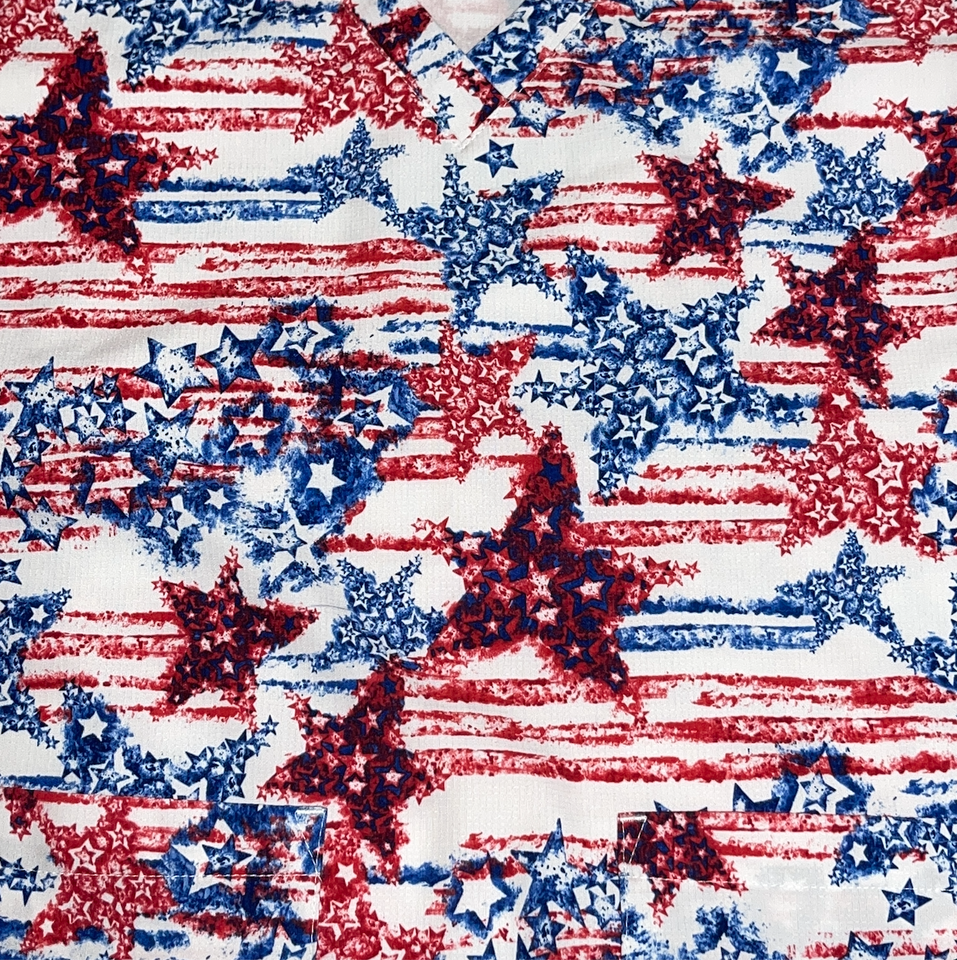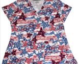 Med Couture Patriotic Stars Stripes Red White Blue Scrub Shirt Size Small READ