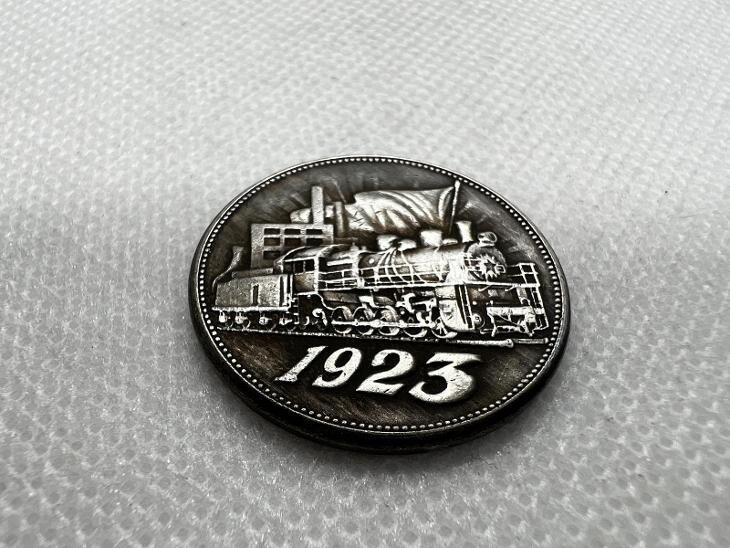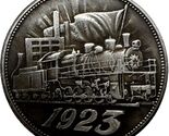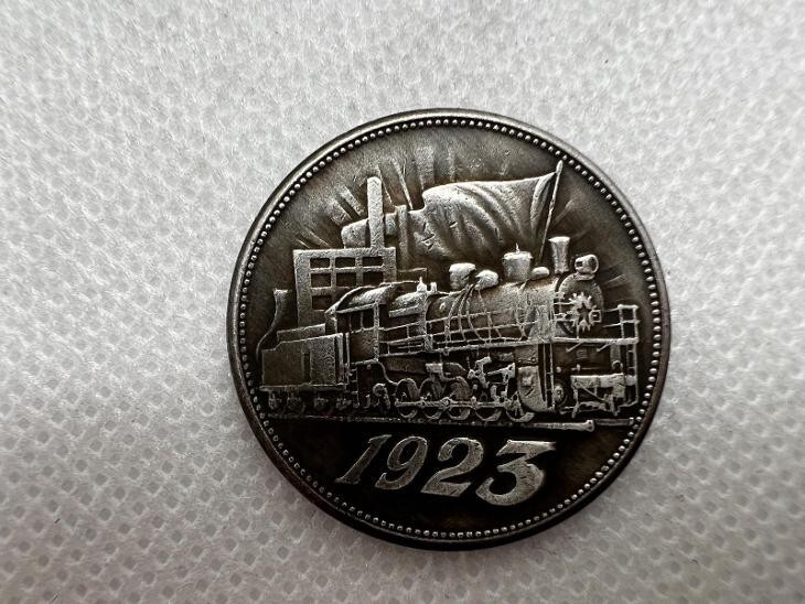 Questo squisito medaglione storico presenta una splendida restrizione di un design di locomotiva del 1923, che funge da accattivante pezzo di storia che merita un posto in ogni collezione di monete o medaglie. Questo oggetto da collezione unico celebra un anno significativo nella storia del trasporto ferroviario, durante il quale le locomotive sono diventate simboli della rivoluzione industriale e del progresso. La rappresentazione della locomotiva che va coraggiosamente a vapore verso l'ignoto evoca un'epoca piena di innovazione e cambiamento trasformativo. L'iscrizione dell'anno 1923 sul medaglione ne esalta il significato storico, rendendolo un must per gli appassionati di storia e patrimonio ferroviario. Questo oggetto e destinato esclusivamente ai collezionisti e commemora le conquiste del passato pur essendo una notevole aggiunta a qualsiasi collezione. Si prega di notare che questo prodotto non e associato ad alcun movimento volto a minare i diritti umani o promuovere discriminazioni di alcun tipo.