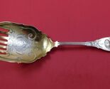 Medallion by J. W. Moir of NYC circa 1844-1887 Salad Serving Fork, Gold Washed and Bright-Cut, 9 3/4". It is monogrammed (on reverse) and is in excellent condition.