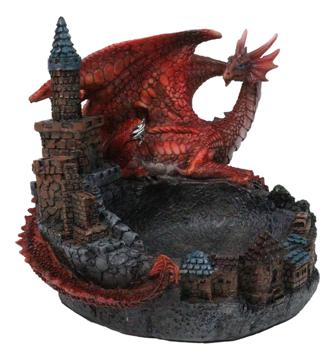 ? This Red Dragon On Castle Ashtray Figurine is made of designer composite resin, hand painted and polished individually.