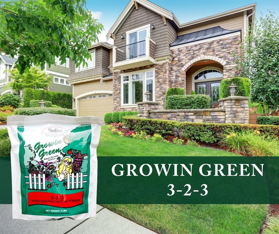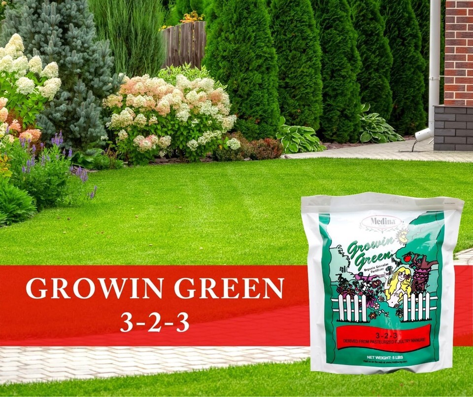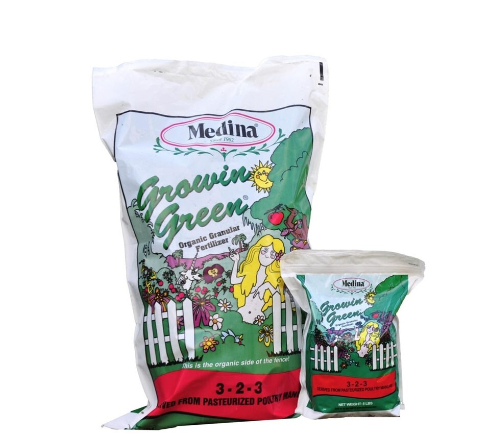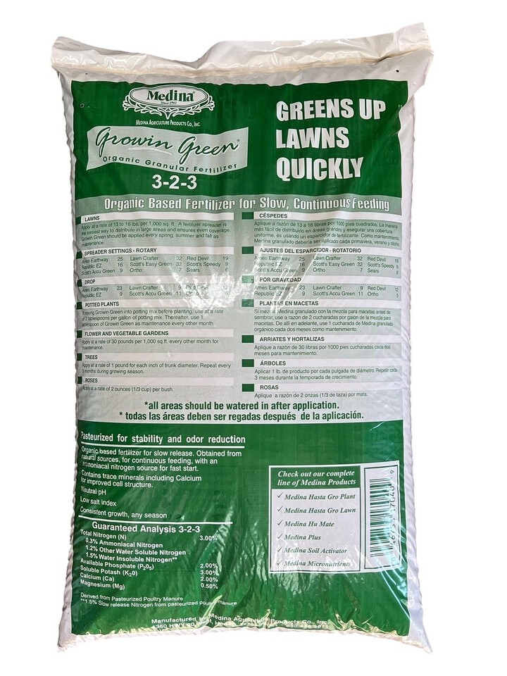 - Medina Growin Green Granular Organic Fertilizer 4-2-3 3000 Sq. Ft. Granules 40