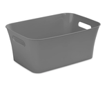 Outside Dimensions: 13 3/4" x 9 1/2" x 5 3/4" Single unit option Gray Flannel Decorative Medium Bins help keep you organized, while providing easy access to contents Store away household items neatly, where they are most frequently used Convenient integrated oval shaped handles allow for easy transport Ideal for use on shelves and within cabinets (10" to 16" depth) Textured matte exterior with polished interior for a fashionable touch Create a versatile storage system ? use multiple Medium Bins and / or pair with Small Bins, for unique storage solutions for a variety of household items! BPA-free and phthalate-free