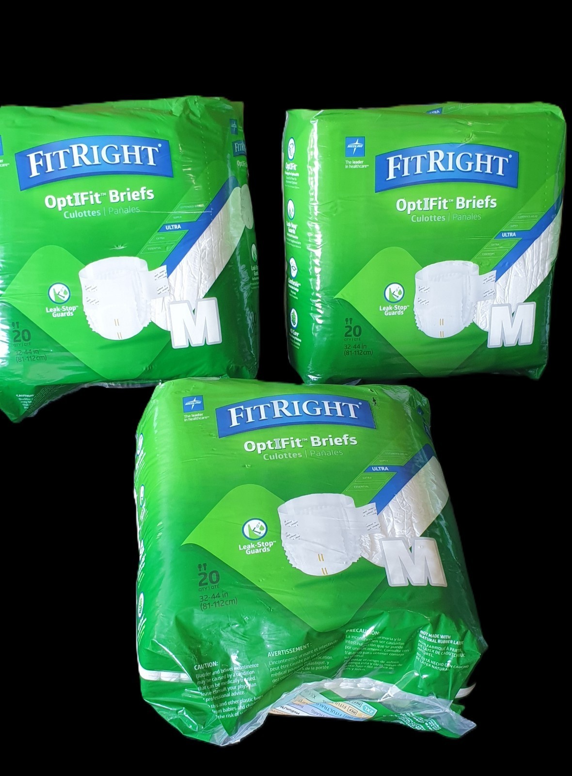 - Medline Fitright OptiFit Incontinence Briefs Adult Diapers Medium 20 Ct (3-Pack)
