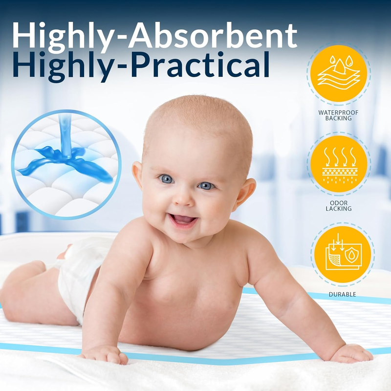 EFFICIENT UNDERPADS: Underpads for kids are a breeze to use, thanks to the ease and efficiency that Medpride Disposable Underpads bring to your daily life. These disposable pee pads are designed to offer superior absorbency and protection, making them essential for maintaining hygiene and cleanliness in situations such as incontinence and bedwetting.