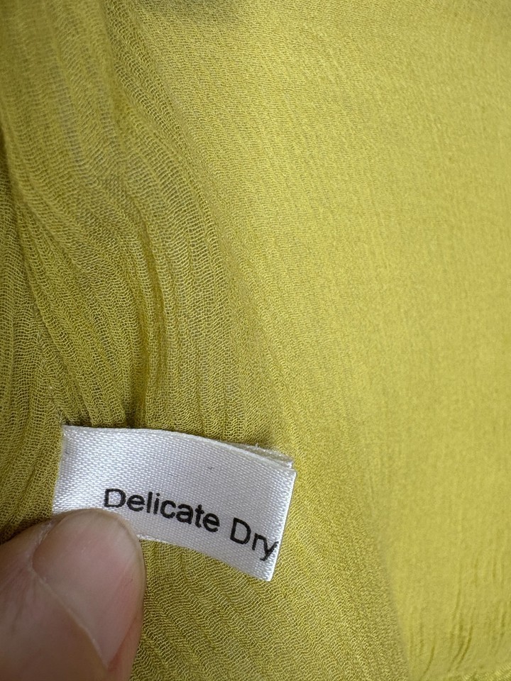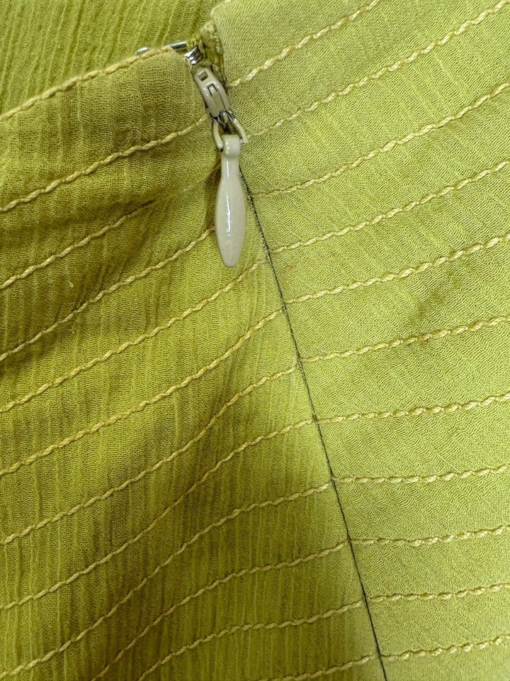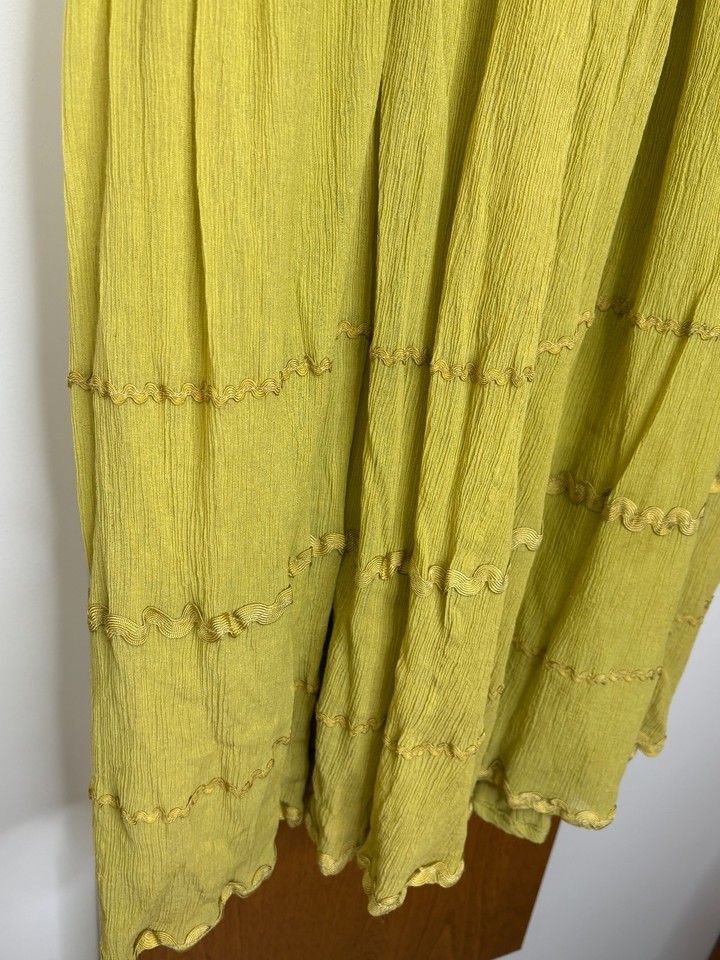 NOTE FLAW: Very tiny spots on a couple areass. See photo. It's hard to see since the fabric crinkles. A snag is also shown which is small and does not distract from the beauty or function of the skirt. Needs dry cleaning. This may correct the spots or can be worn as is?still looks beautiful.Priced accordingly.