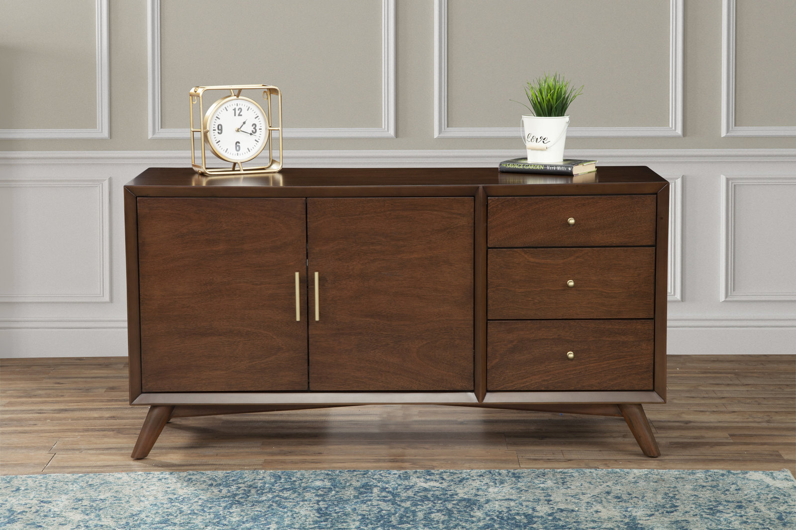 Features: Mid Century Modern Style Design Two Drawers Sideboard Adjustable Shelves inside cabinet English Dovetail Drawer Construction Elegant design enhances any space with sophistication Timeless appeal that complements various decor styles Set Includes: One (1) Sideboard