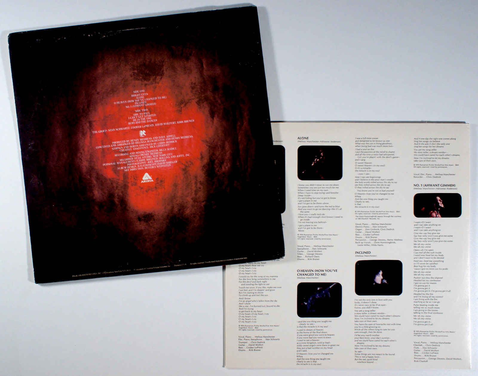 Bright Eyes, by Melissa Manchester, showcases a blend of pop, jazz, and rock influences reminiscent of artists like Joni Mitchell and Laura Nyro. The album, produced by Hank Medress and Dave Appell, features Manchester's emotive vocals and songwriting, with notable contributions from collaborators like Carole Bayer Sager and Adrienne Anderson. Historically significant for its bold, less commercial sound before Manchester's later mainstream success, it reflects her early artistic freedom under Bell Records. The single O Heaven, featuring the Dixie Hummingbirds, was released with a gospel-tinged, uptempo vibe; its B-side, Inclined, was praised as a potential hit for its relatable take on one-sided relationships. The album remains a cult favorite for its raw, authentic musicianship.