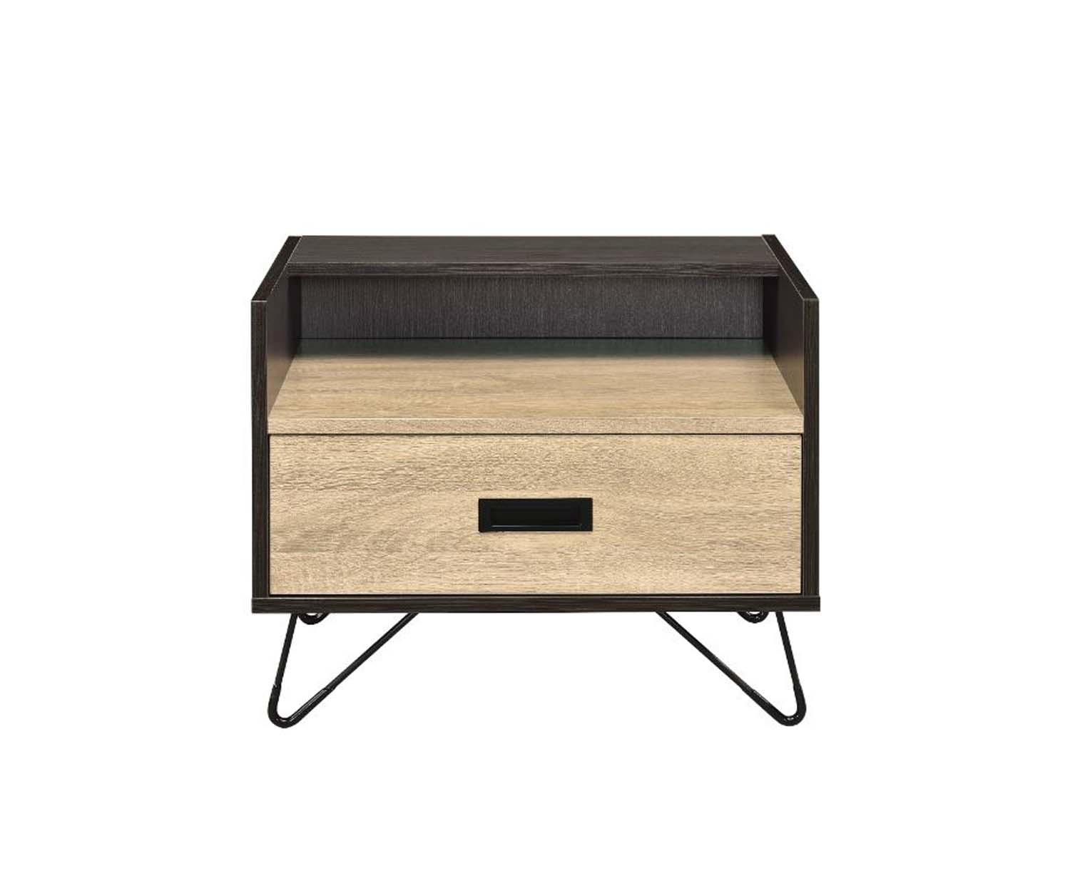 Features: Rectangular Accent Table 1 Storage Drawer 1 Open Compartment Metal Leg with Tip Side Metal Drawer Glide Set Includes: One (1) Accent Table