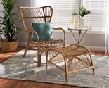Melodie Natural Brown Antique Rattan 2Pc Chair and Footstool Set