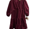 - Melonie T Dress Womens 12 Purple Merlot Corduroy Baby Doll Mini Tiered Fall