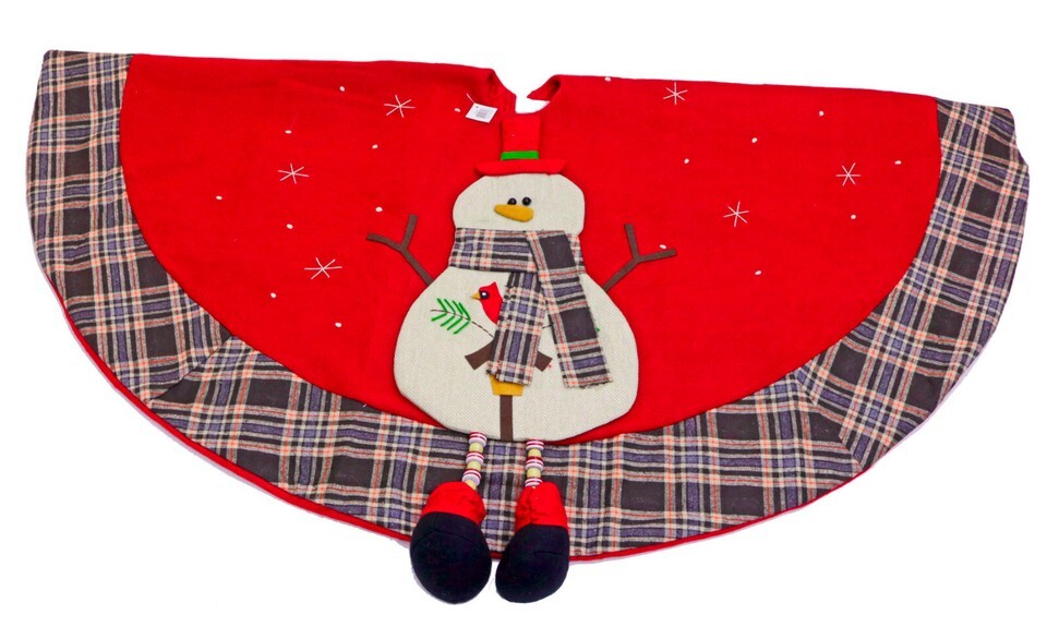 - Melrose Top Hat Snowman & Cardinal Christmas Tree Skirt 48 inches Across