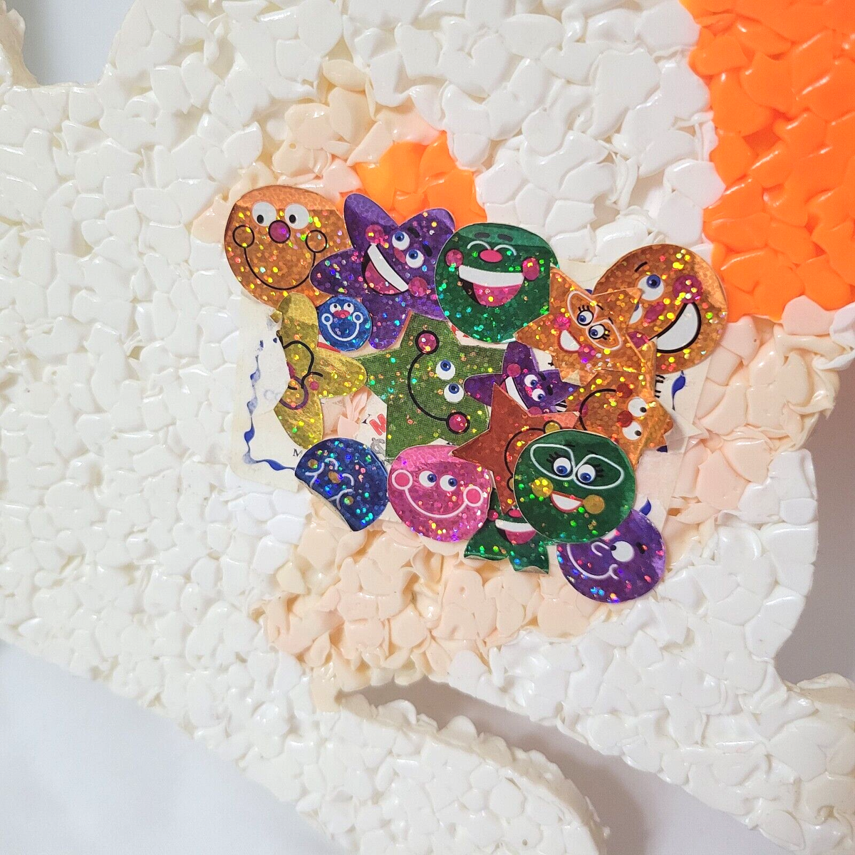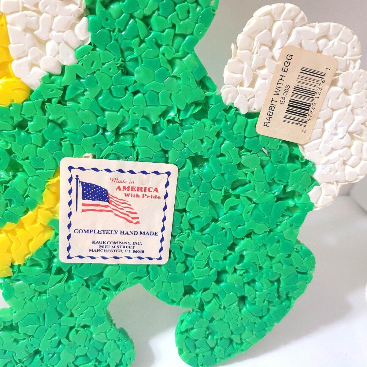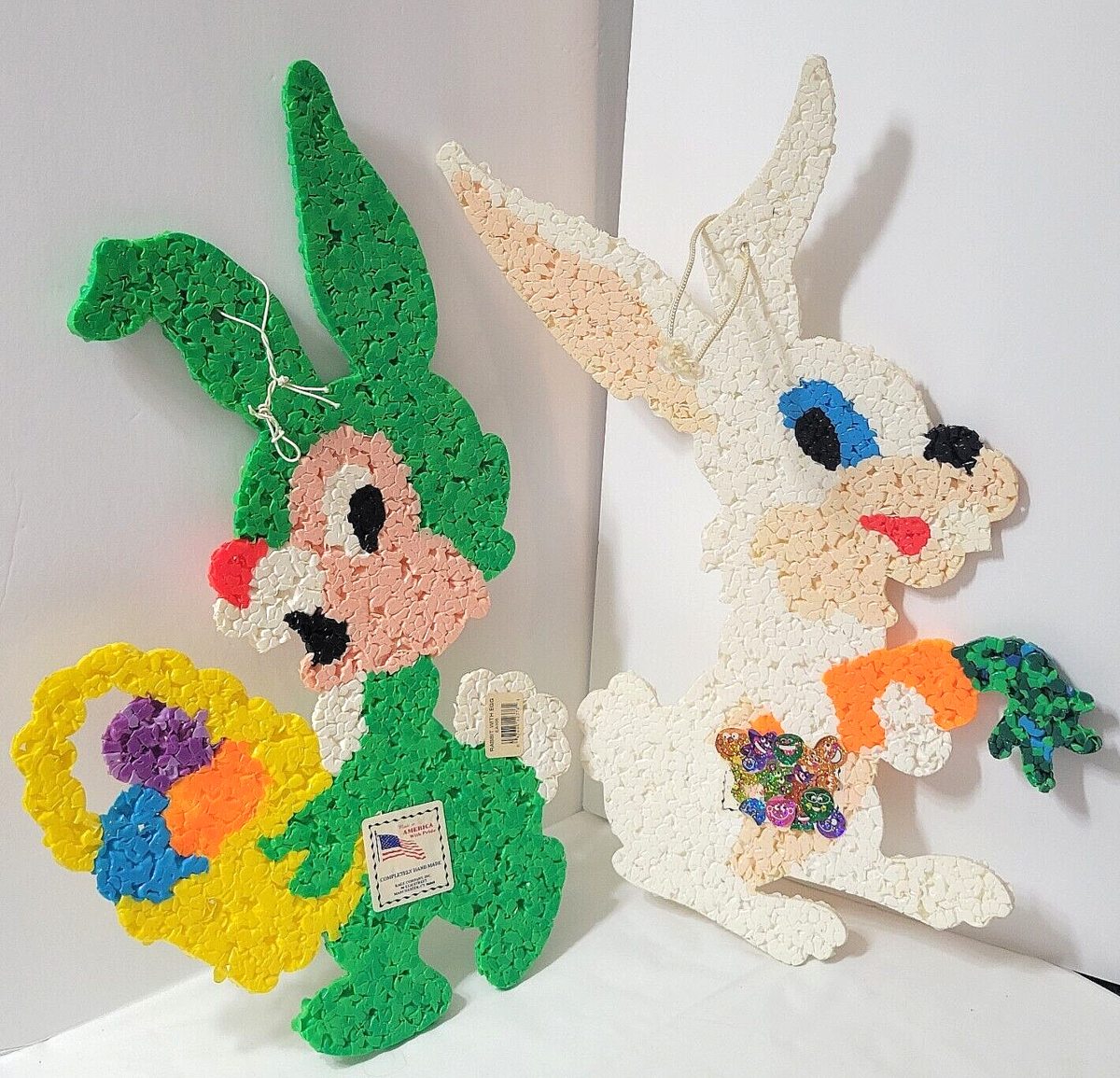 Melted Plastic Popcorn Easter Bunny 2 Vtg 21" Bunnies Green + White Kage Rabbit