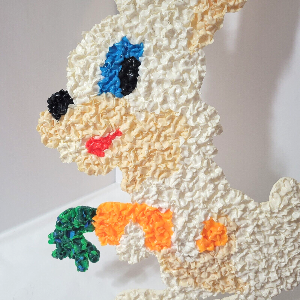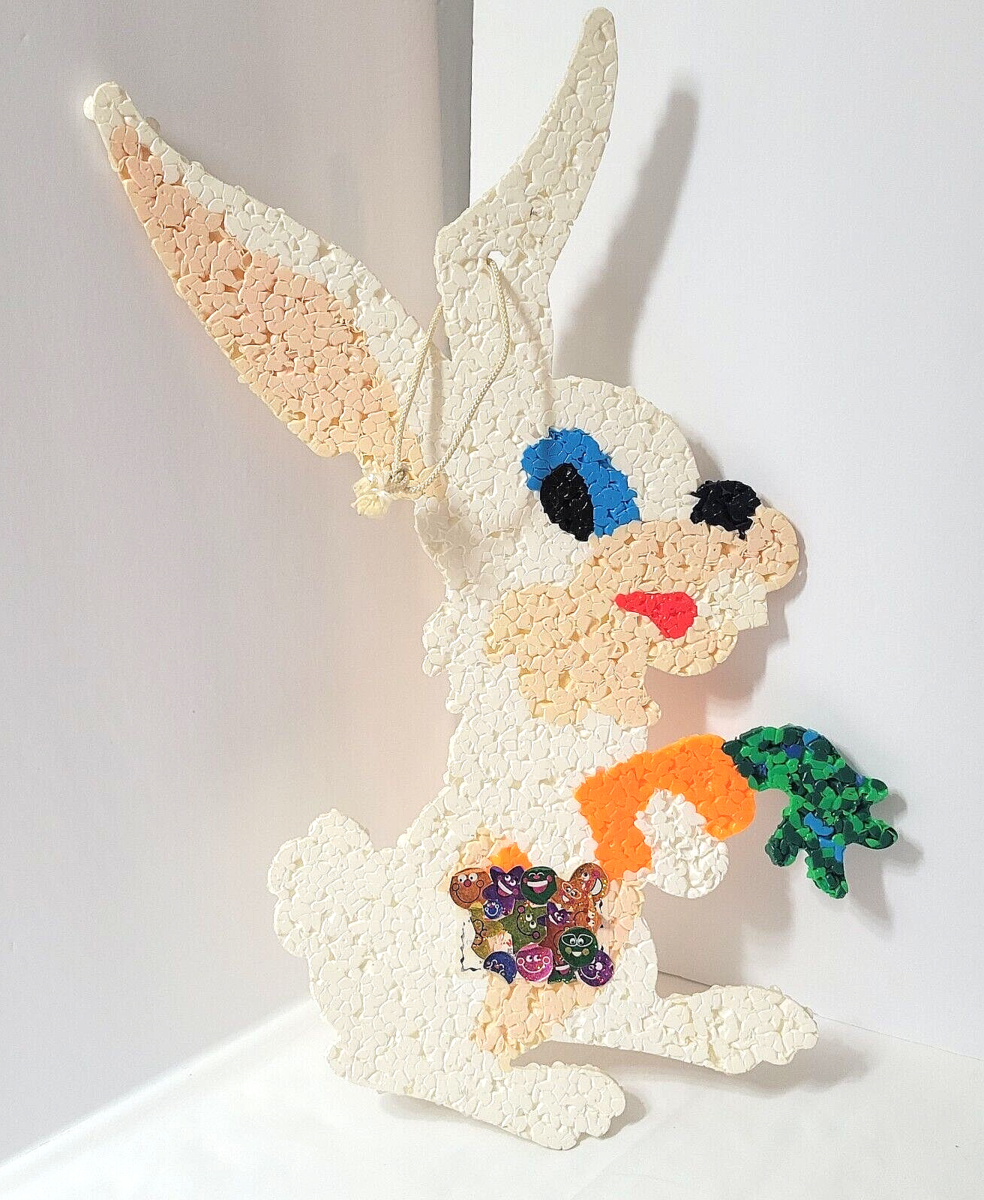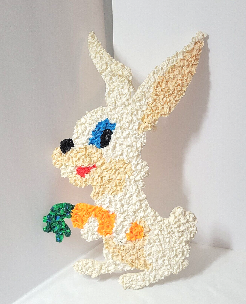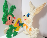 - Melted Plastic Popcorn Easter Bunny 2 Vtg 21" Bunnies Green + White Kage Rabbit