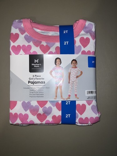 Members Mark 4 Piece Girls Favorite Pajamas Size 2T Hearts And Rainbows