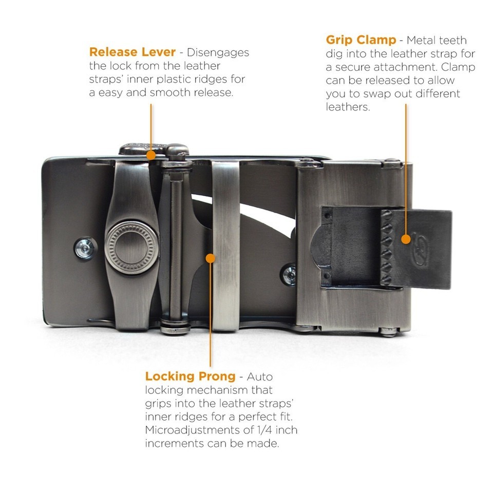 - Men Genuine Leather Sliding Removable Ratchet Buckle Ratchet Belt - Brown M(34)
